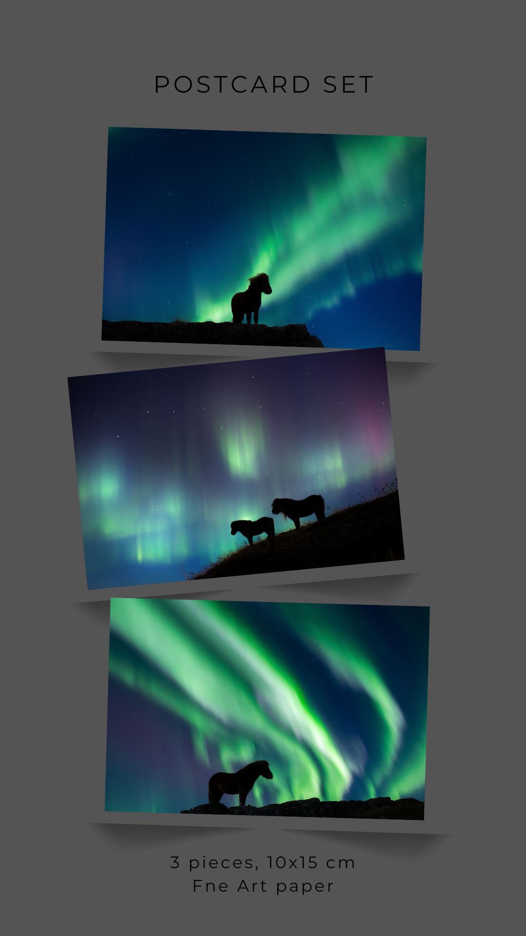3-piece postcard set 10x15cm, printed on soft touch Fine Art paper.